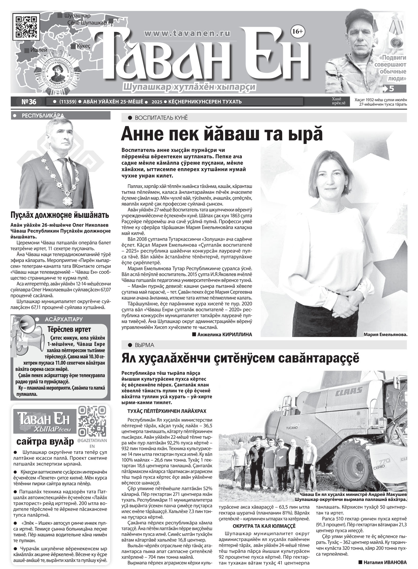 Номер газеты: №36(11359) Дата выхода: 25.09.25