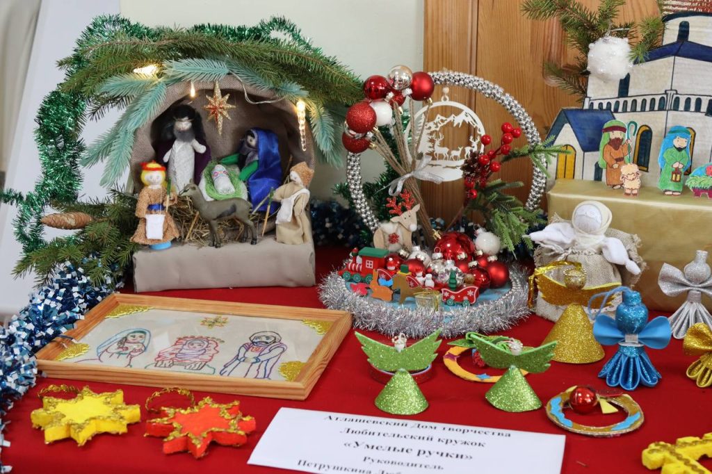 Помимо этого, была организована выставка «Декоративно-прикладное творчество», где были представлены ангелы, звёзды, ёлочные игрушки и другое творчество, созданное руками детей и их наставников.