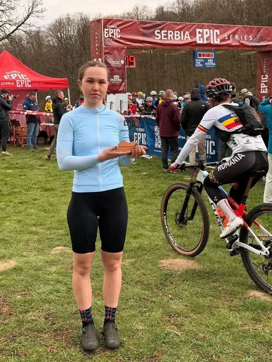 Элина Семенова представила себя в состязаниях по маунтинбайку в дисциплине «кросс-кантри» в Сербии.