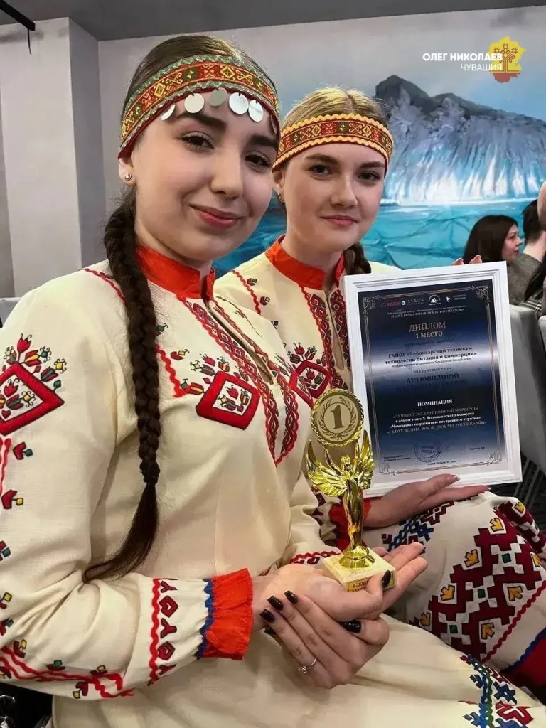 Студентки Чебоксарского техникума пищевой промышленности и коммерции, Инна Григорьева и Елена Торговцева, добились выдающегося успеха на X Всероссийском чемпионате «I LOVE RUSSIA-2026», проходившем в Санкт-Петербурге. Они одержали победу в категории «Лучший экскурсионный маршрут», продемонстрировав высокий уровень подготовки и творческий подход.